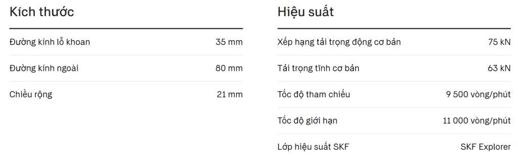 Thông Số Kỹ Thuật NJ307ECJ SKF