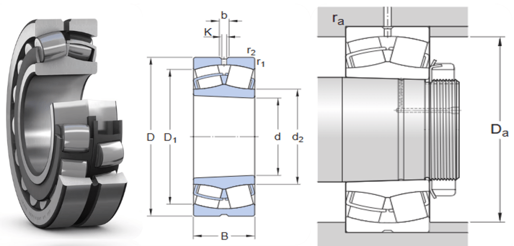 Ổ tang trống chịu được tải trọng lớn theo cả hai hướng. Chúng là ổ tự lựa và bù độ lệch và độ lệch trục nhưng gần như không làm tăng ma sát hay nhiệt độ. Kiểu ổ bi có phương tiện để hỗ trợ tái bôi trơn. Có thể sử dụng ổ bi trong hệ thống kiểu mô-đun như gối đỡ, ống lót và đai ốc.