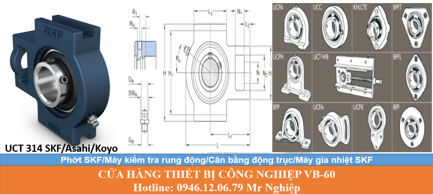 Dưới đây là bảng thông số kỹ thuật chi tiết của gối đỡ ASAHI UCT314: